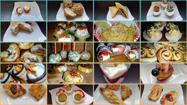 Fingerfood für alle, die gern mit den Fingern und ohne Besteck essen. Ob vegetarisch, mit Fleisch, mit Fisch oder doch lieber süß.....es ist für alle was dabei
